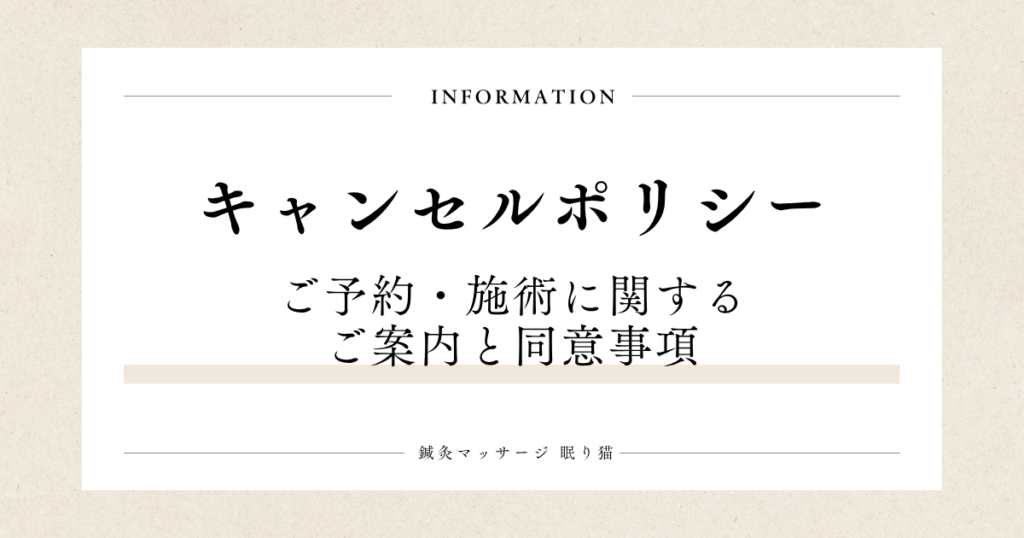 鍼灸マッサージ 眠り猫 「ご予約・施術に関するご案内と同意事項」