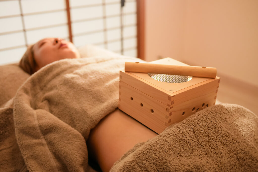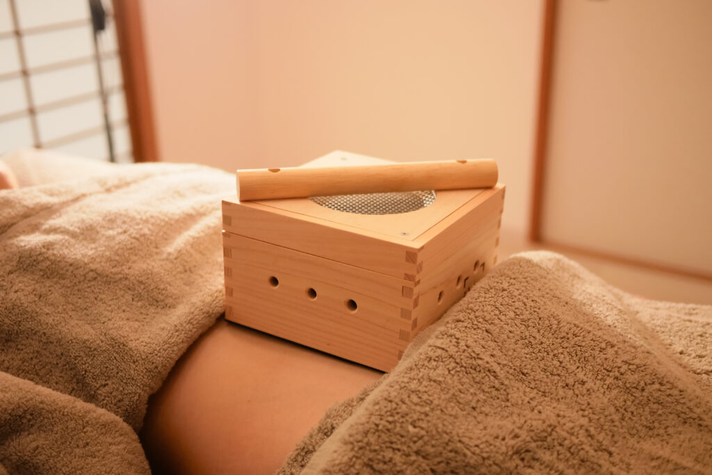 特に冷えが集中しやすい「お腹・腰まわり」には、箱灸という温熱療法を使います。